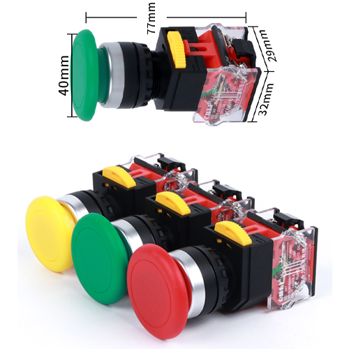 Nút Nhấn nấm 22mm nút nhấn nấm, nút nhấn đầu dù to on off, sử dụng lắp trên mặt tủ điện, nút đầu nấm 1 no 1nc, nút nhấn đầu dù.