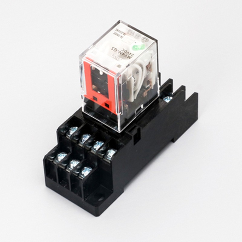 - Rờ le trung gian MY2N-GS được sử dụng khá phổ biến trong tủ điền khiển. Với kích thước nhỏ gọn nhưng dòng tải lớn, giúp bỏ vệ ngõ ra cho các thiết bị điều khiển (đồng hồ nhiệt, cảm biến,…) được an toàn.