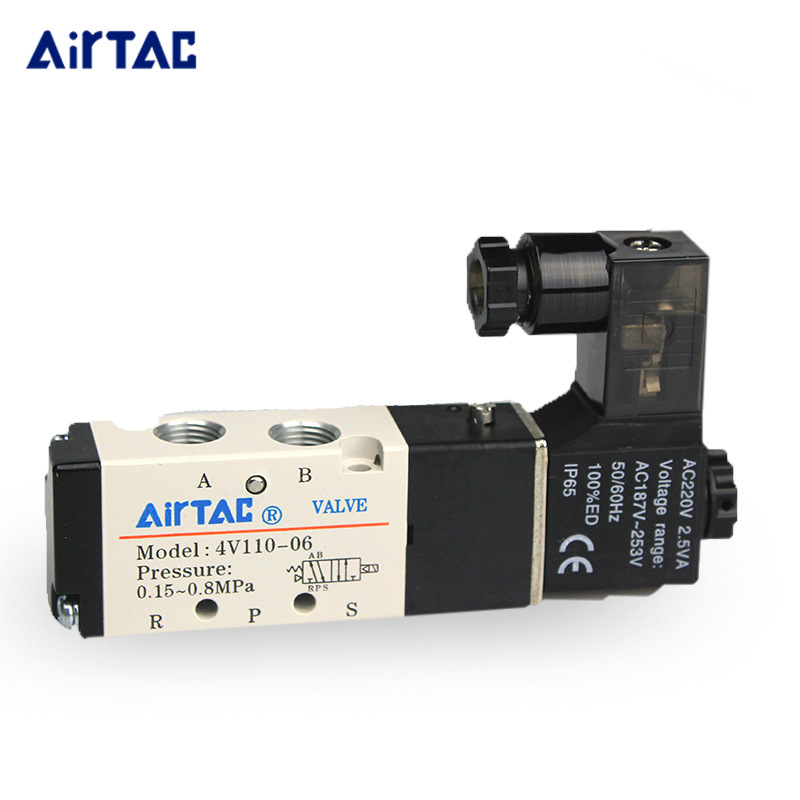 Van điện từ AIRTAC 4V110-06 là loại van khí nén 5/2 có 5 cổng 2 vị trí và 1 đầu coil điện, kích hoạt và điều khiển bằng điện, thường được dùng để điều khiển xi lanh khí nén.